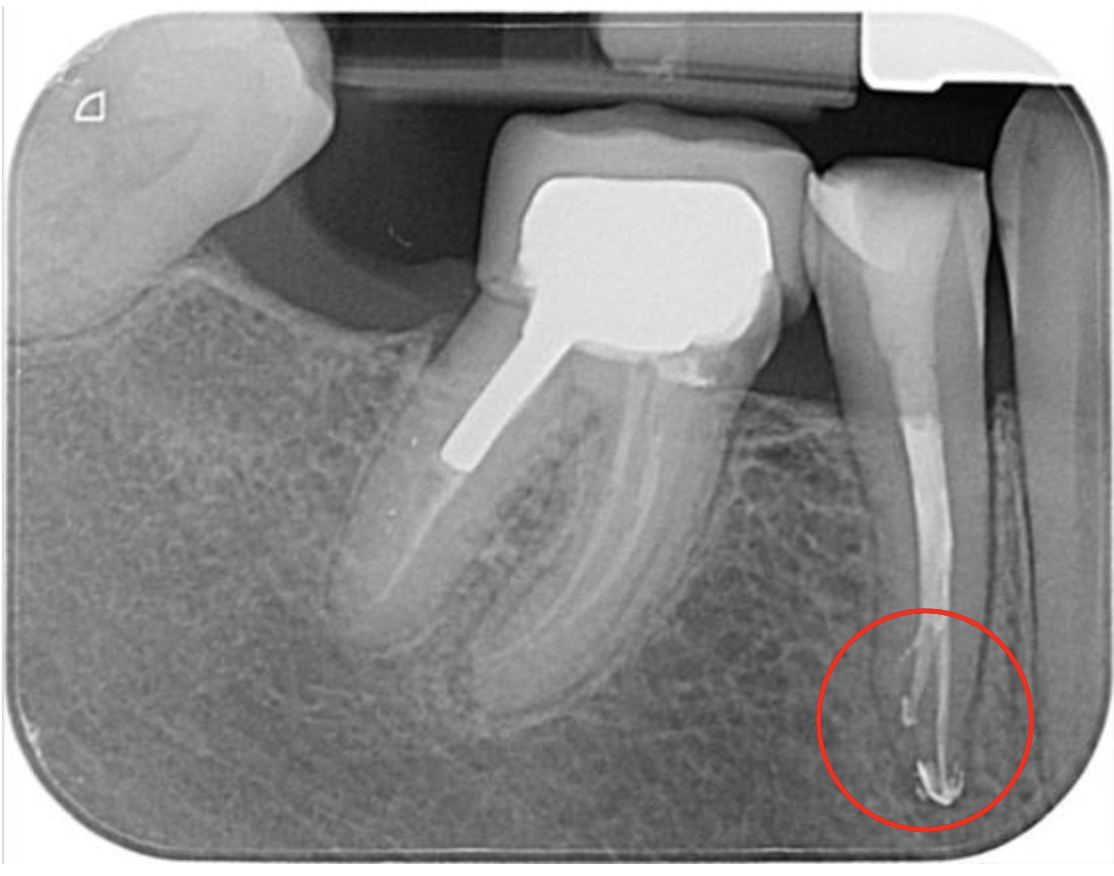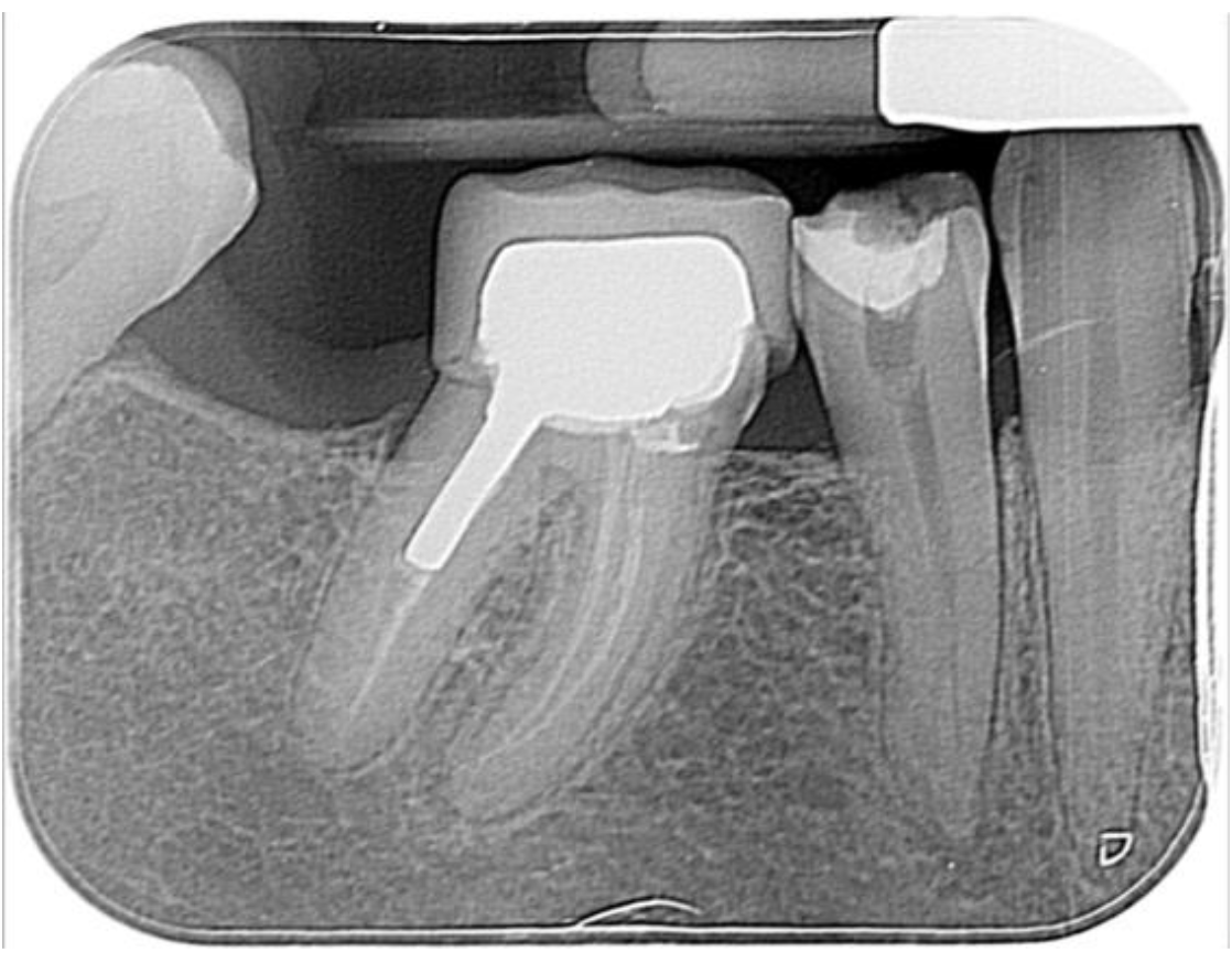 Below is the radiograph (displaying nice healing) taken at her 1-year review appointment, where the patient reported the tooth was symptom-free, which was pleasing: