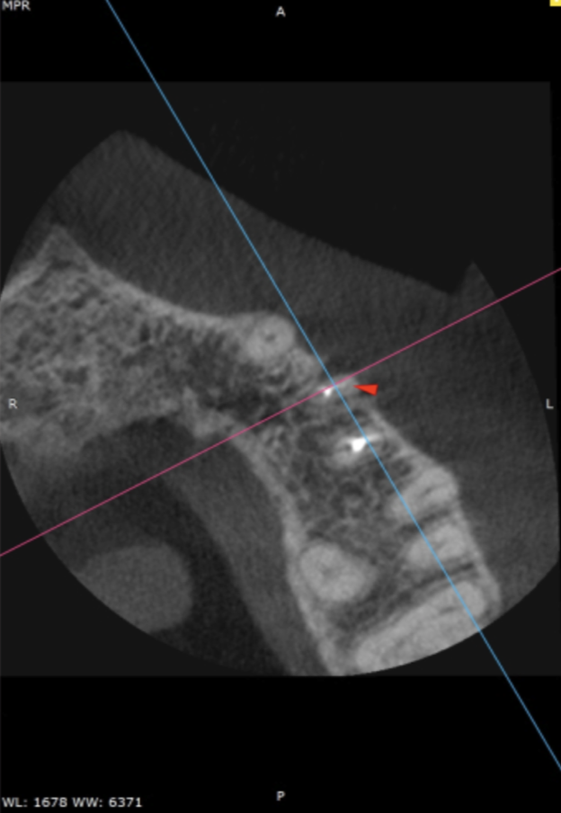 Having this information preoperatively made the management of this case far more predictable and underlines why a small field of view high-resolution CBCT scan can be invaluable in the management of most re-treatment cases and arguably most primary cases too. Please follow the link for the most current guidance on the use of CBCT in endodontics (https://onlinelibrary.wiley.com/doi/10.1111/iej.13187). At the first visit, the existing root filling was removed using Reciproc blue R25 and prepped using R40 rotary files and the previously unfilled buccal branch was prepared with the reduced taper (4%) VDW Rotate 1504, 2005 and 2504 files, which is one of my favourite file systems. After lots of irrigation and PUI, the tooth was dressed using calcium hydroxide, and the tooth was well sealed for a month. The aim of this was to try and reduce the swelling and alleviate this lady’s symptoms, which it did really nicely. At the second visit, the tooth was further disinfected and re-obturated using WVC and TotalFill BC sealer Hiflow. It was then returned to the RD for cuspal coverage without delay. I plan to review this case in a year's time, so I will update this case study with new radiographs when I have them.