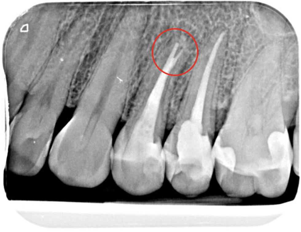 This delightful lady was referred to me as she had recurrent pain and a firm apical swelling around her previously root-treated UL4. Upon viewing the IOPA, at first glance, this case appeared to have been adequately filled. However, CBCT review (shown above) highlighted a deep apical split of the main canal and an unfilled buccal branch, which seems like the most obvious reason for failure in this case.